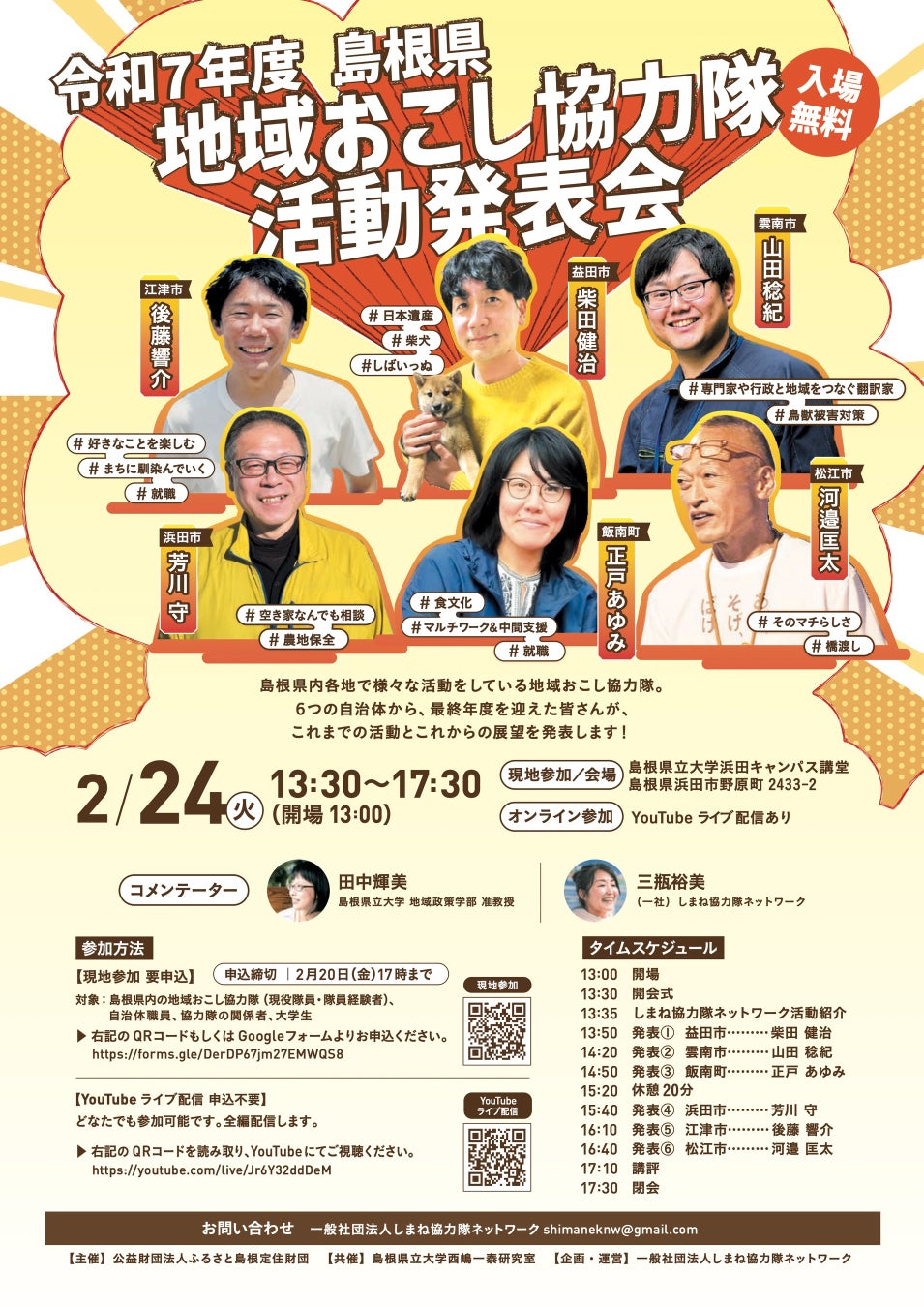 令和7年度 島根県地域おこし協力隊活動発表会 申込フォーム