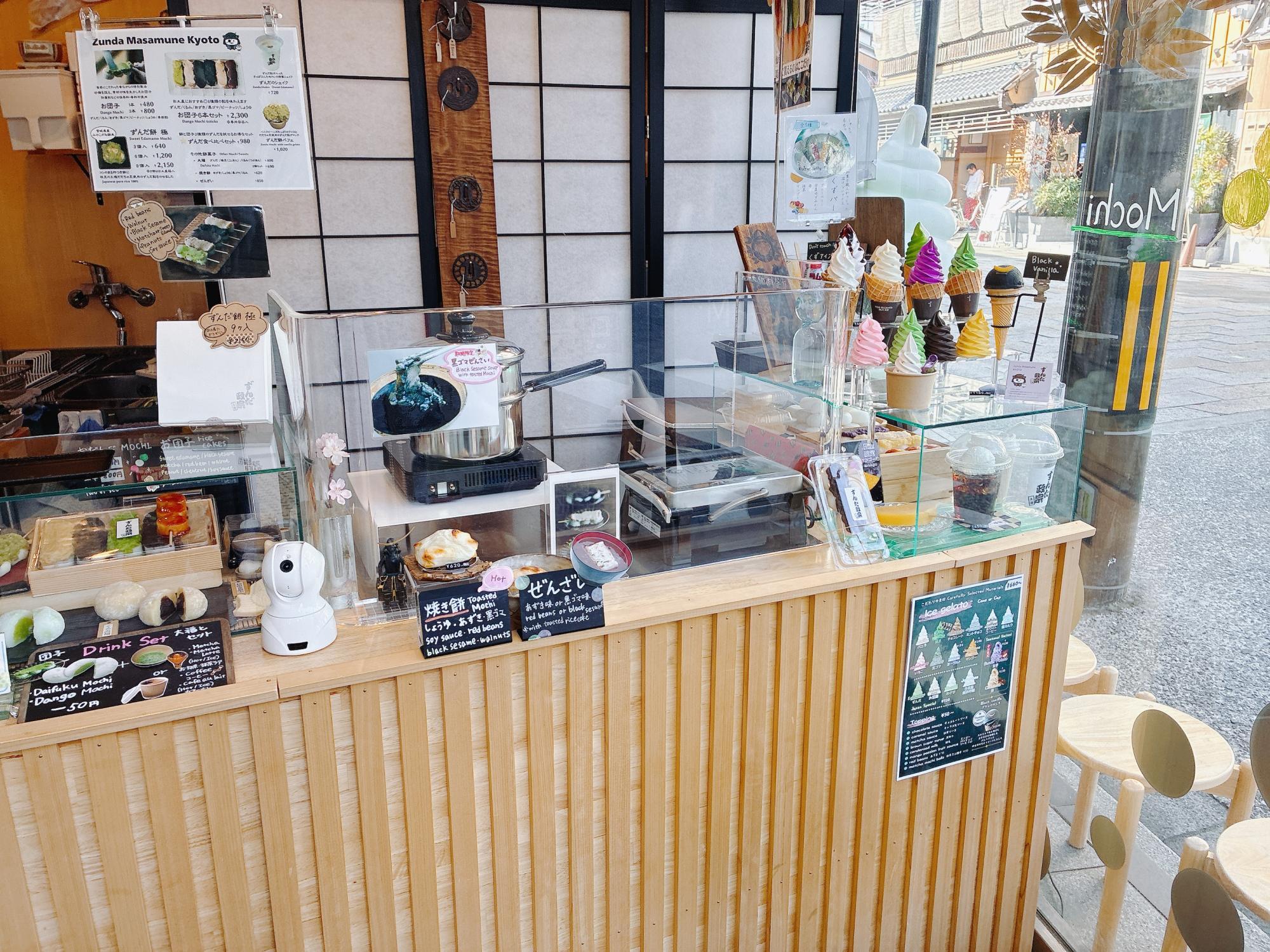 祇園・白川エリアの風情ある路地に佇むこちらのお店。夜23時まで営業されているので、祇園の夜に浮かび上がる「ずんだ」の文字がとっても印象的です。実はここ、オーナーが刀剣や甲冑専門の古美術商を営んでいるという、世にも珍しいずんだスイーツの専門店なんです。