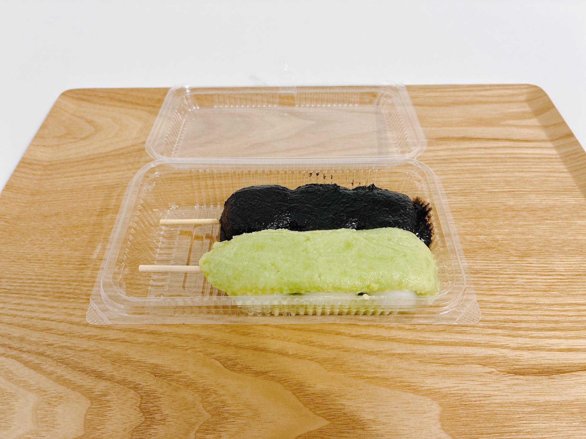 今回は、新メニューとして人気のお団子を「ずんだ」と「黒ごま」でいただきました。注文を受けてから用意されるお団子は、1本がとっても大きくてボリューム満点!