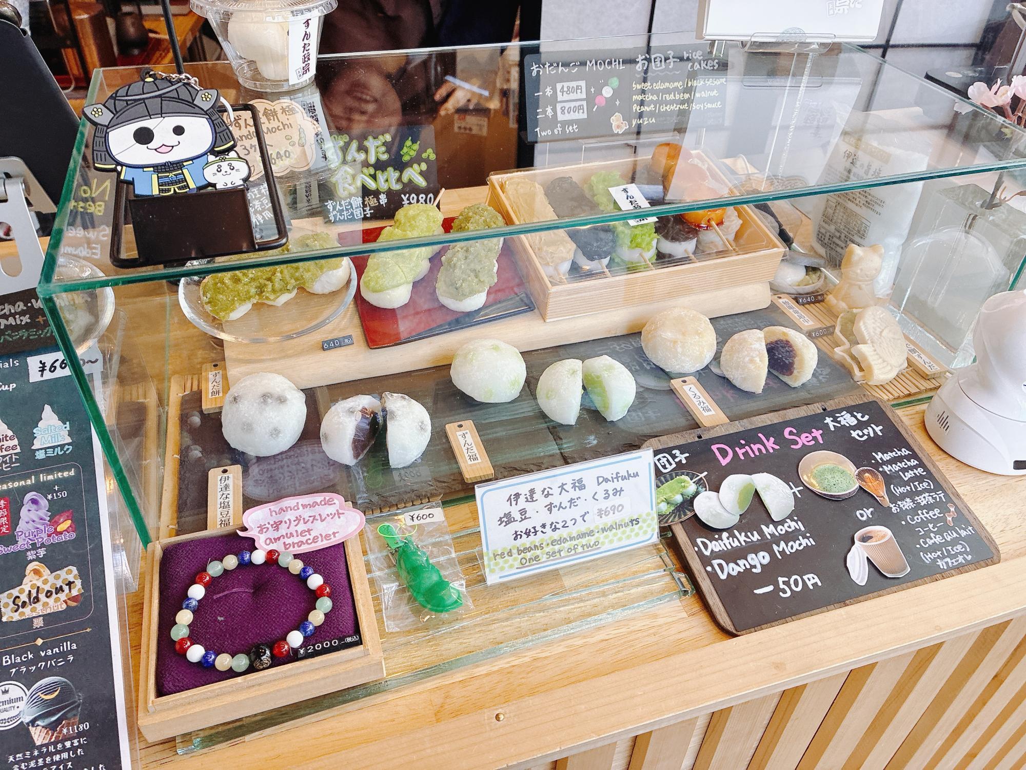 看板メニューの「ずんだ餅」をはじめ、シェイクやジェラートなど、どれも魅力的で迷ってしまいます。こちらで使われているお餅は、宮城県産のブランド米「みやこがね米」を100%使用。素材はすべて本場・仙台から直送されているというから驚きです。