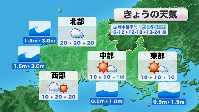 一方、朝は濃い霧が発生するおそれがあります。車の運転など十分ご注意ください。