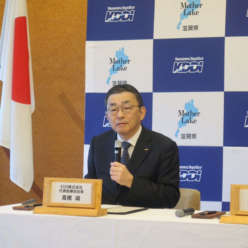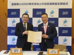 2月4日、KDDIは滋賀県と包括連携協定を締結し、滋賀県庁において、滋賀県の三日月大造知事、KDDI代表取締役会長の髙橋誠氏が出席のもと、協定締結式が行なわれた。