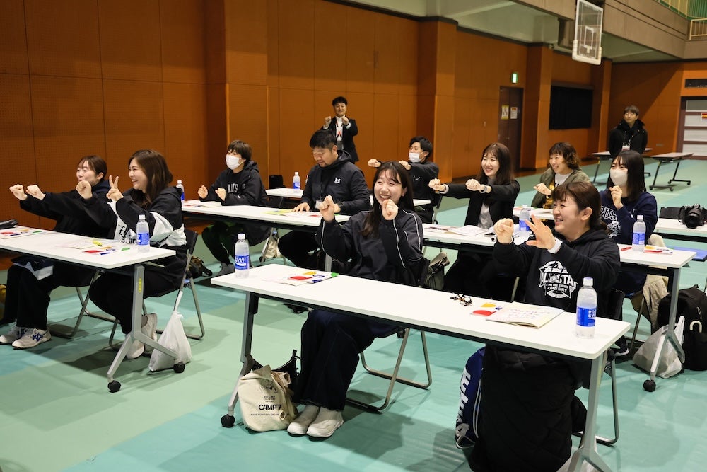 講義の中では実際に身体を動かすプログラムも含まれており、先生方からは笑顔も ©B.LEAGUE
