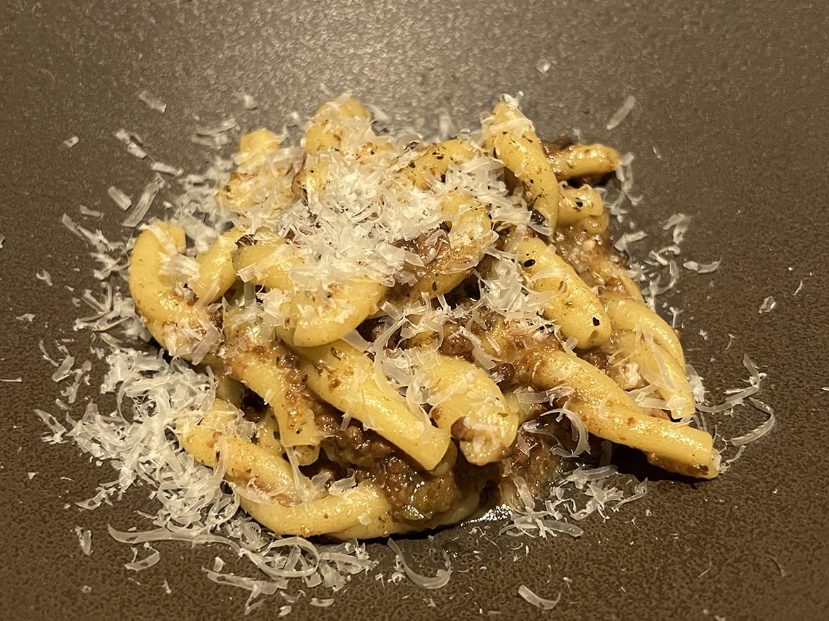 これがズッキーニのポタージュだ!2品目「真鯛のカルパッチョ ガスパチョのクスクス」。どちらも絶品。シグネチャー・パスタ「淡路麺業のカサレッチェ 塩ボロネーゼ ミックススパイス」。チーズをたっぷりかけてもらった!3品目「太刀魚の炭焼き アーティチョークの軽い煮込み」。皮がパリッ!の太刀魚、旨し。どうですか、この色ツヤ! 深い味わい!「国産牛フィレ肉のグリル 赤ワインソース」。デザートは3種類のなかから、「黒文字と洋梨のパンナコッタ」を選んだ。
