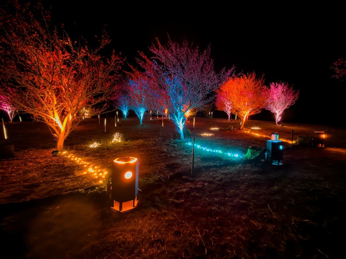 没入感のあるエンターテインメント: 光・音・映像の演出が融合し、梅林がアート空間へと変わる。