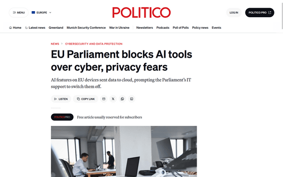 欧州議会が、議員および職員が使う業務用デバイスでAI機能を無効化したことが分かりました。