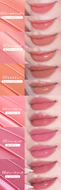 色展開:01 ピーチキャンディ / 02 ヌードピンク / 03 ミルクティー / 04 バニラローズ / 05 ベリーピンク / 06 グレープソーダ- 発売日:2026年2月17日