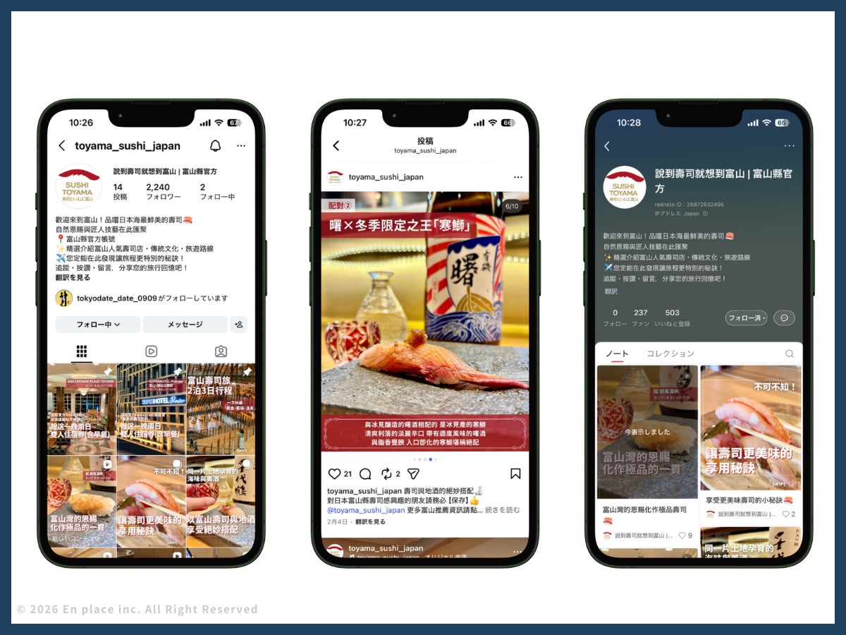 店舗集客及び、インバウンドマーケティング支援を行う 株式会社En place は、富山県 が推進する「寿司といえば、富山」のブランディングプロジェクトにおいて実施する台湾人観光客を主なターゲットとしたデジタル統合型インバウンド誘致プロジェクトの支援を行っております。