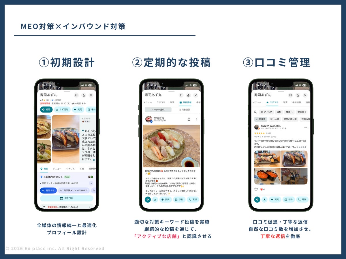En placeがこれまで培ってきたMEO・SNS・広告・インフルエンサー施策の運用実績を活かし、SNSを活用した「寿司」を切り口とする訪日外国人観光客誘客促進業務を受託することとなりました。