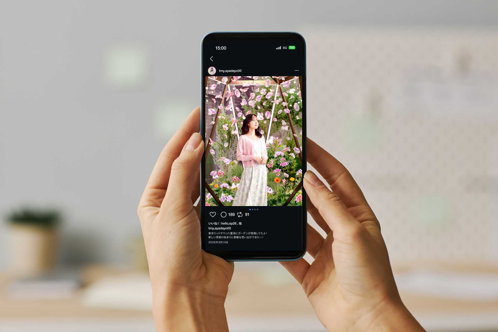 1階アトリウムには、春のガーデンと高さ約3.5mのオブジェが合わさった花びらが舞っているような瞬間を切り取った空間「FLOWER SHOWER」が登場。再利用可能なアーティフィシャルフラワーによる幻想的な空間で、色とりどりの花々に囲まれた華やかなフォトスポットとしてお楽しみいただけます。天候に左右されない館内アトリウムに設置していますので、いつでも快適に、心ゆくまで春の彩りを写真に収めていただけます。