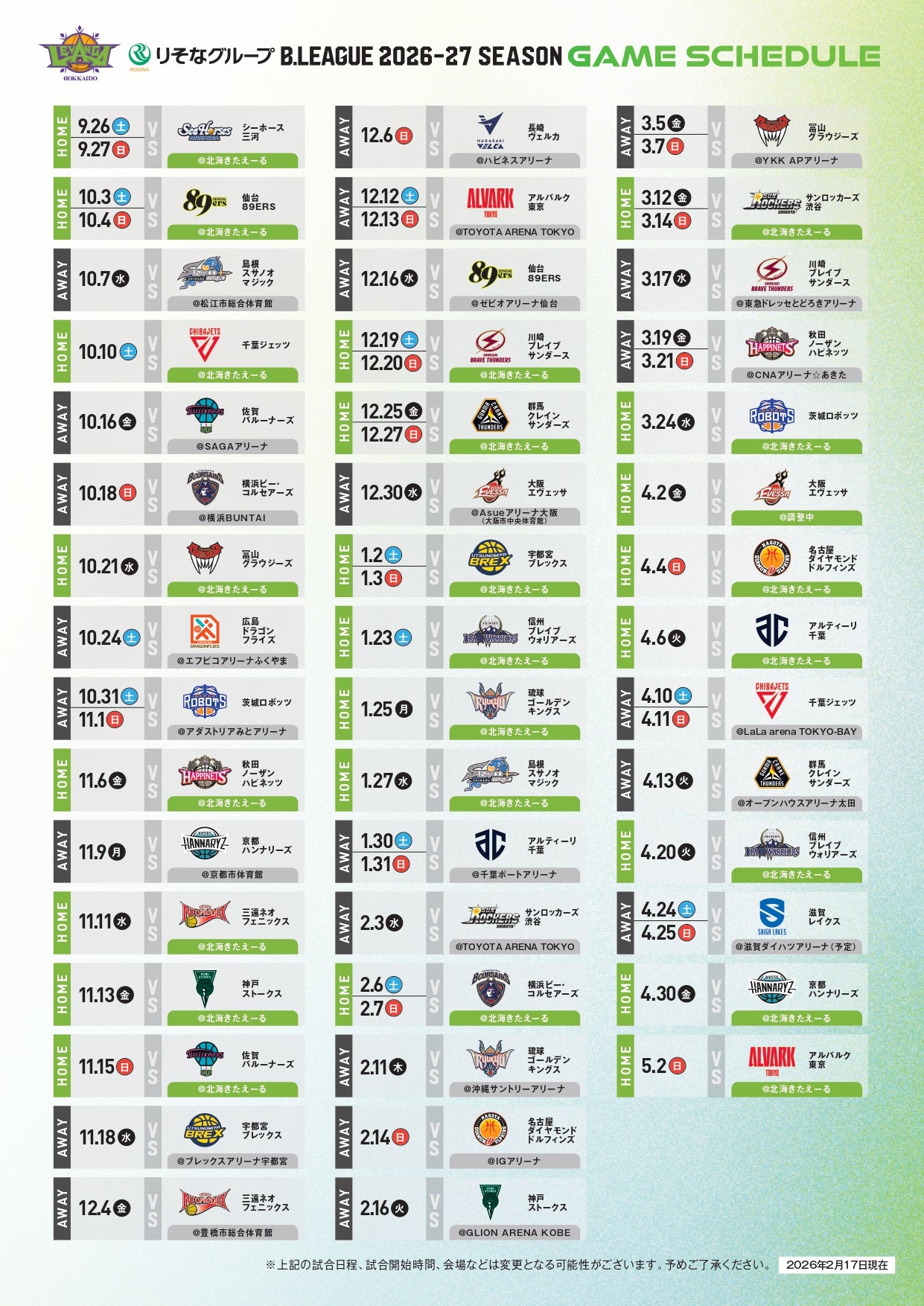 あわせて、レバンガ北海道の試合日程をご案内いたします。