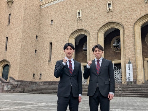 本日、早稲田大学にて、#18 岩屋頼選手と#7 堀田尚秀選手の「ドラフト指名挨拶会見」が行われましたのでお知らせします。
