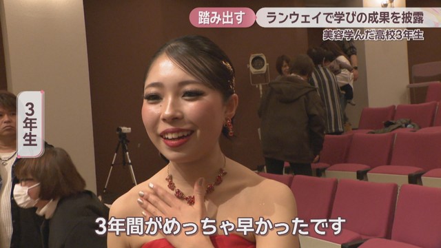 「3年間がめっちゃ早かったです。卒業は寂しいんですけど、みんな将来に向かって頑張っていくと思うので、ヘアメイクさんになろうと思っています」