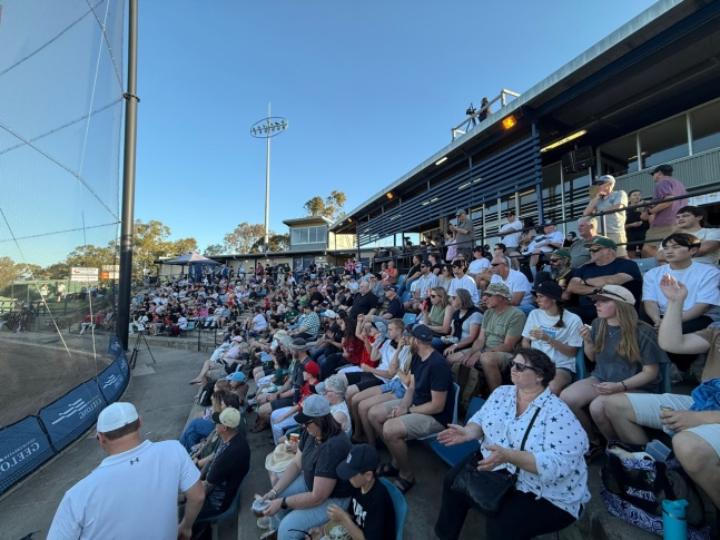 豪州の野球ファンが16日(韓国時間)、豪州ジーロングのジーロングベースボールセンターで行われたKTウィズとメルボルン·エイシスの練習試合を見守っている。 /写真=KTウィズ提供