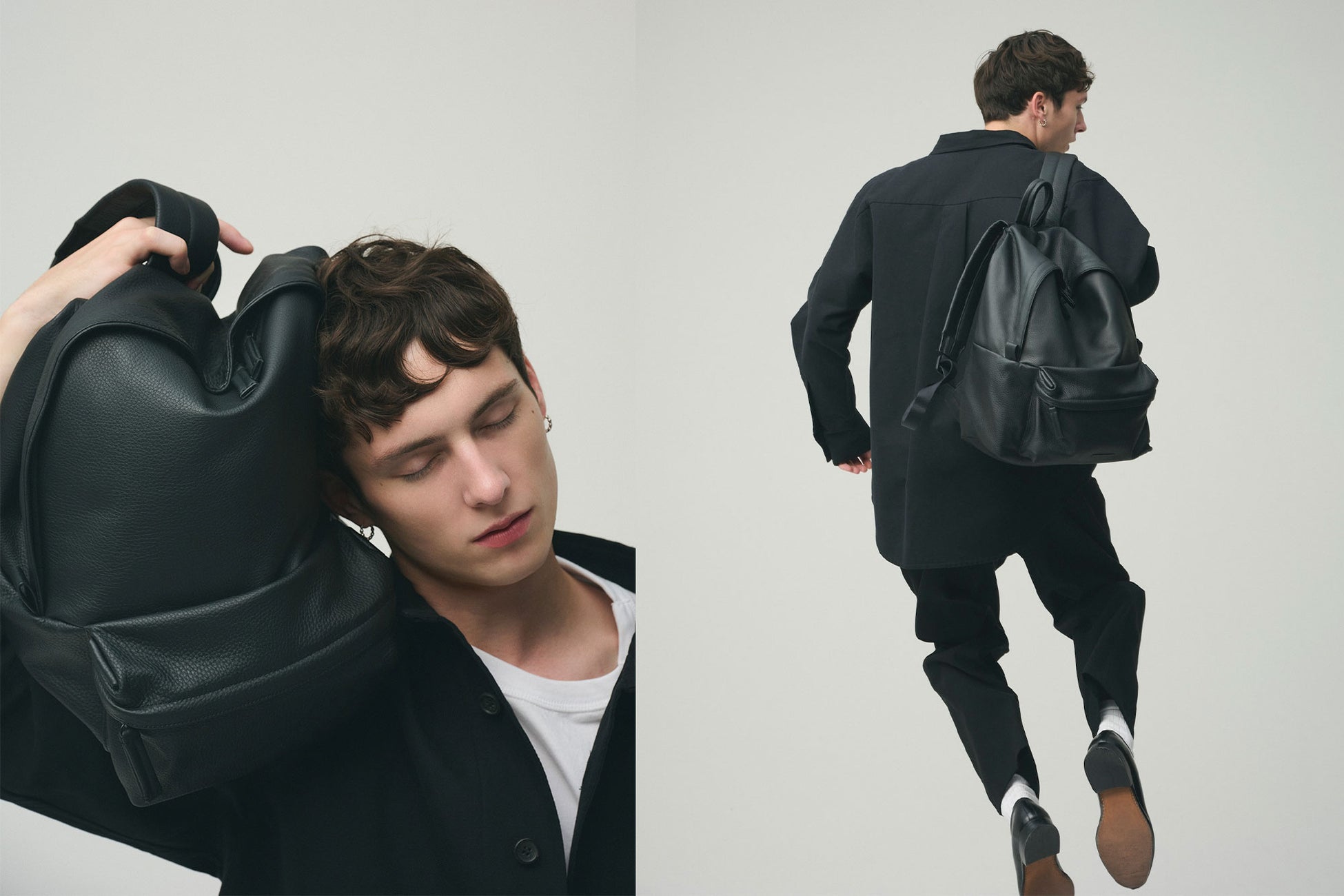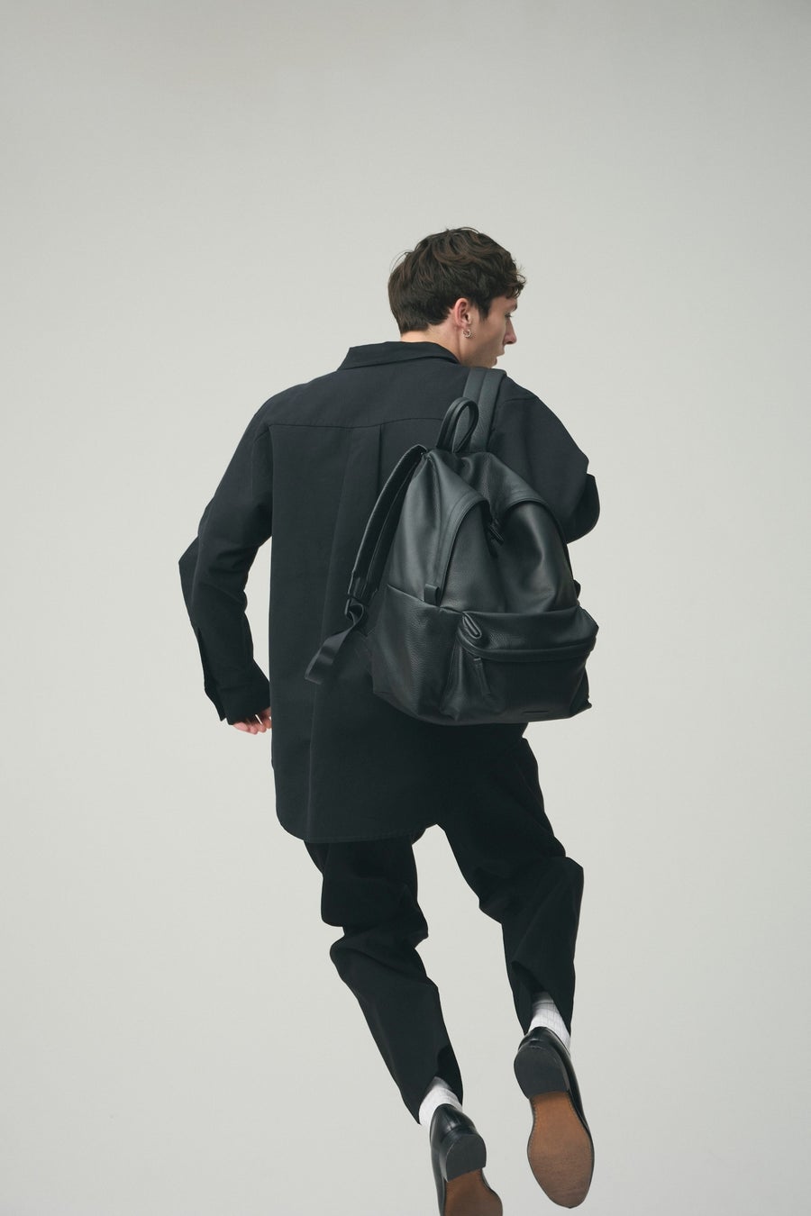 背面構造から芯材を極力排除し、背負い心地もソフトに。ショルダー部分には十分なクッション材を搭載し、移動時の肩への負担を軽減します。カジュアルな装いにもレザーの質感が自然に馴染み、スタイリングに落ち着いた印象を添えてくれます。