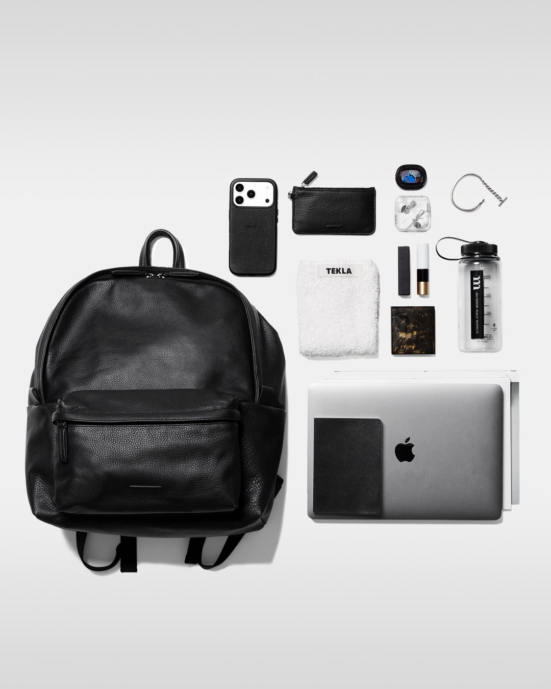 Mサイズで約725g。ナイロン製に準じた軽さを実現しながら、レザーならではの美しいドレープが楽しめるデイパックです。重量感のある構造的なデザインではなく、荷物量に応じて表情が変わる有機的なシルエットに仕立てることで、実際の重さから視覚的な印象まで軽やかさを追求しました。