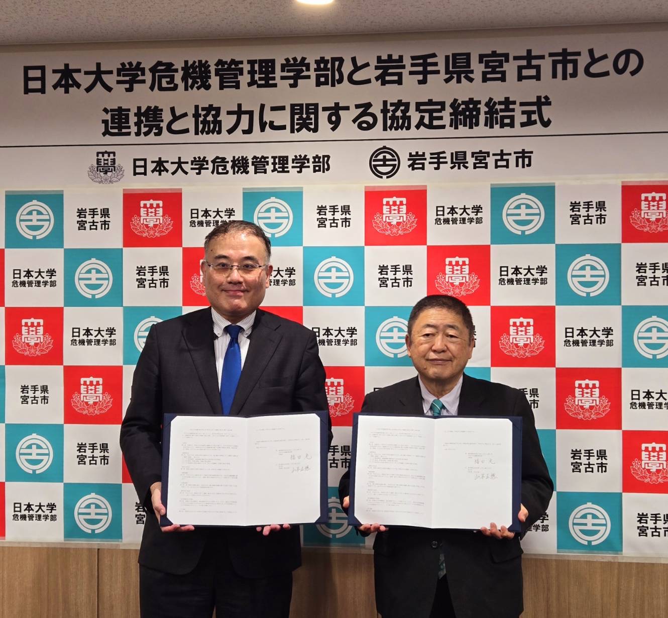 宮古市と日本大学危機管理学部は「危機管理に関する相互の連携と協力に関して包括協定」を結びました。