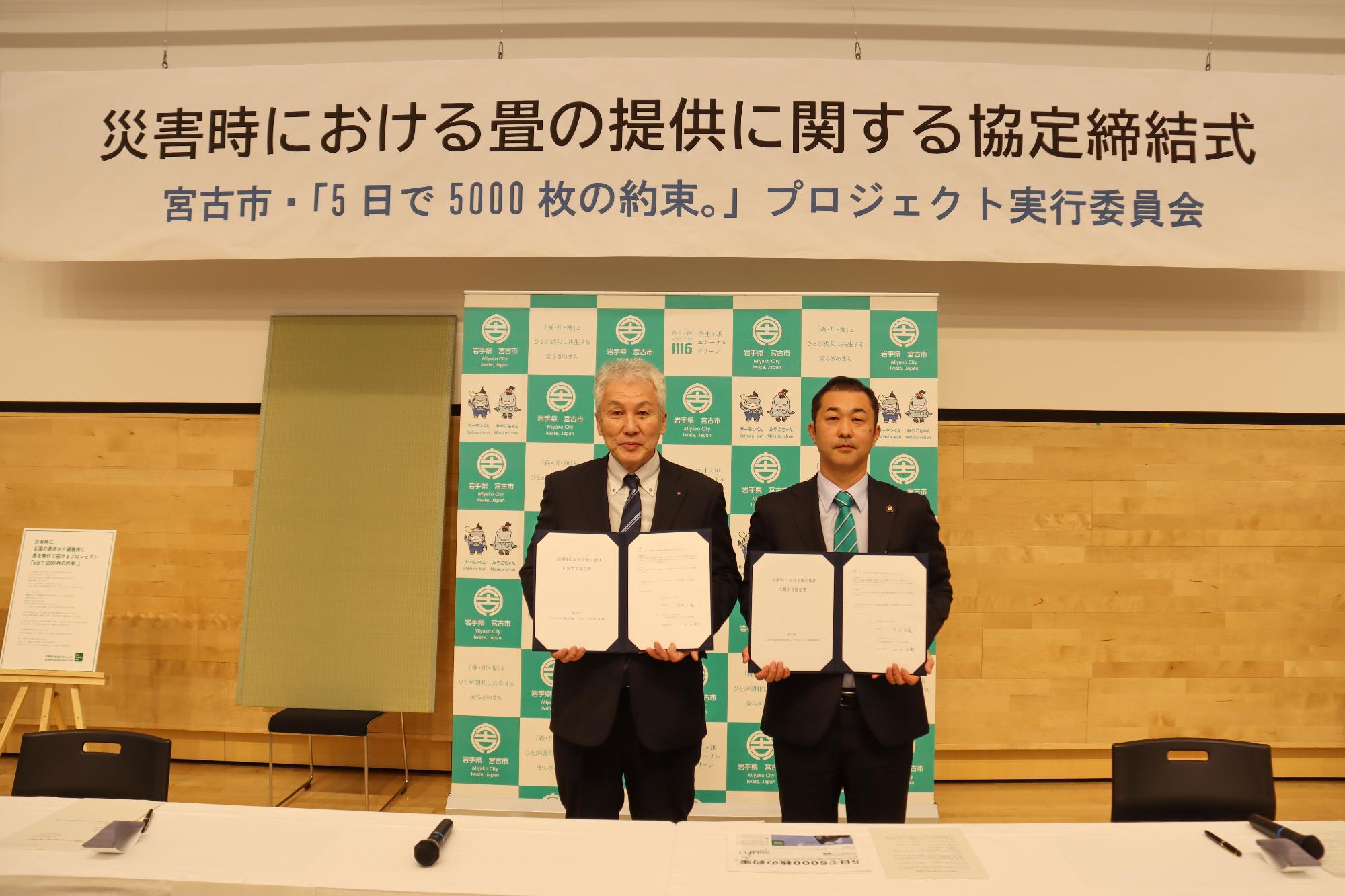 宮古市と「5日で5000枚の約束。プロジェクト実行委員会は「災害時における畳の提供に関する協定」を結びました。