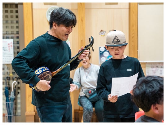 島唄歌詞づくりを通して地元の方々と交流するこどもたち