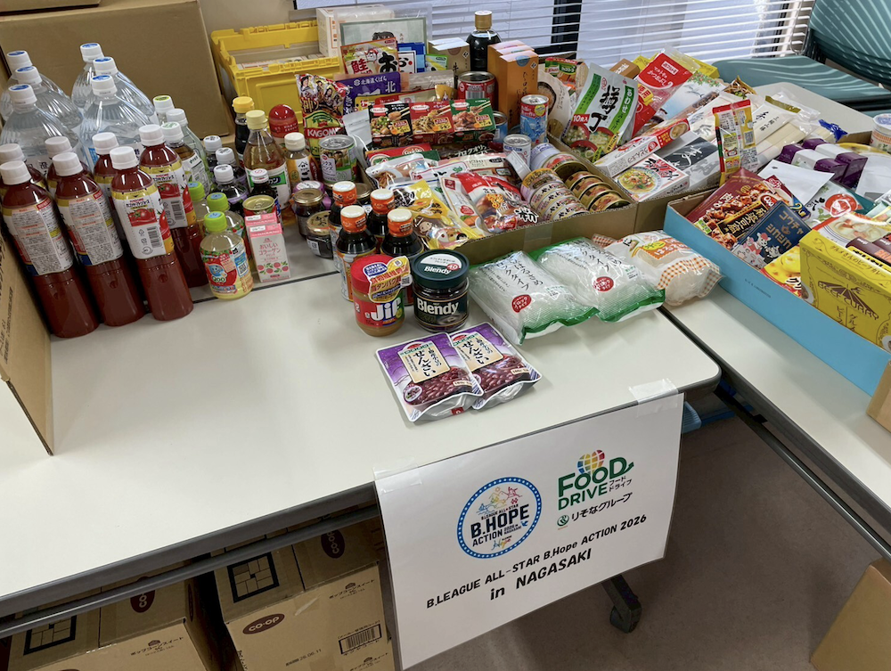 会場では、「自分の地元のホームゲームでもフードドライブに参加したけれど、とても良い取り組みだと思ったので、長崎のオールスターにも持ってきました!」と笑顔で話すファンの姿が見られました。このコメントは、B.Hopeが目指してきた「活動の継続性」と「地域を超えた連帯」が、着実にファンの皆さまの間に浸透していることを感じるコメントでした。集まった食品は、「一般社団法人ひとり親家庭福祉会ながさき」様へ寄付され、長崎県内の支援を必要とするご家庭へと届けられました。