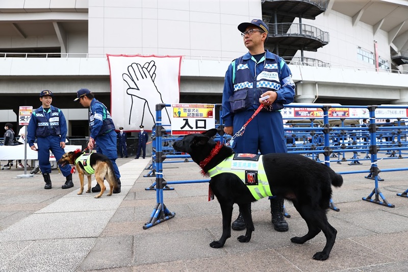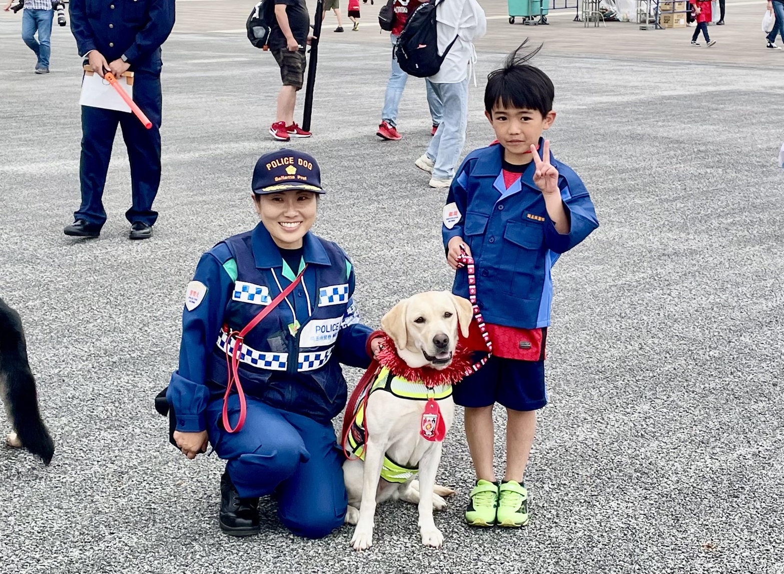 警察犬には専属の訓練士が終始帯同し、適切な休憩時間および休憩場所を確保するとともに、十分な体調管理を行ったうえでイベントに参加します。