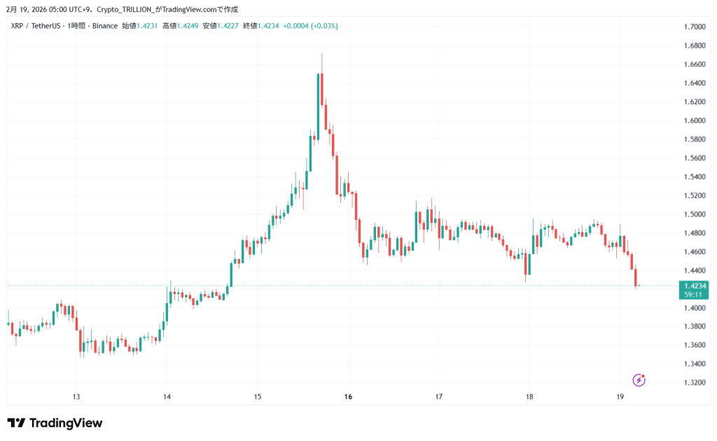 (参考 TradingViewのXRPUSDTチャート 1時間足)