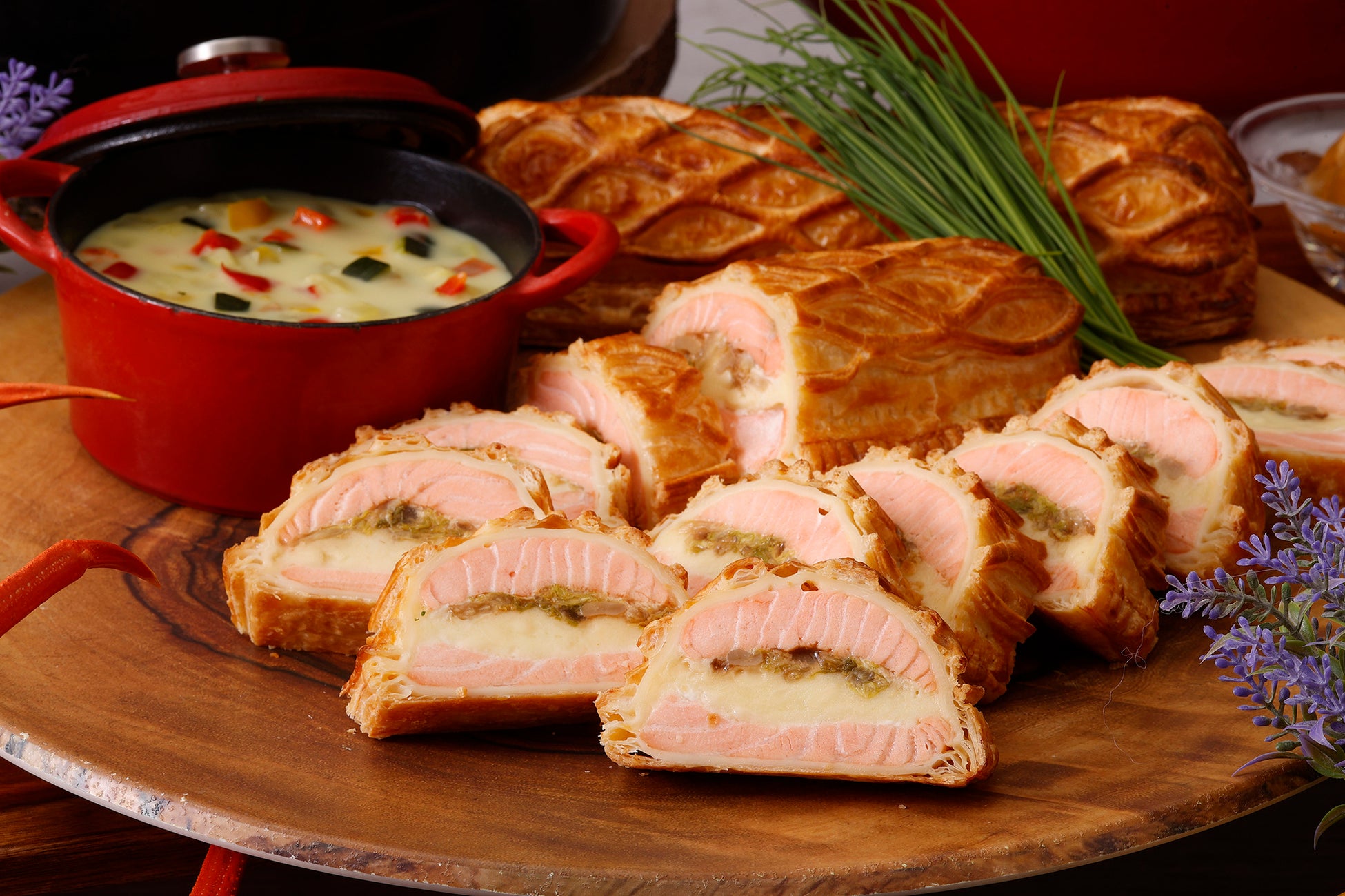 そのほか、雲丹のフランや、北海道産シーフードのブイヤベース、知床サーモンのパイ包み焼きなど、海の恵みを存分に味わえる多彩なメニューをラインナップ。濃厚な旨味が魅力の北海道産牛肉のローストビーフは、ご注文ごとにシェフが切り分けて提供いたします。さらに、北海道産赤肉メロンやハスカップ、天地人トマト、冬熟じゃがいもなど選りすぐりの食材を使用した料理もご用意し、北海道の大地の恵みもお楽しみいただけます。