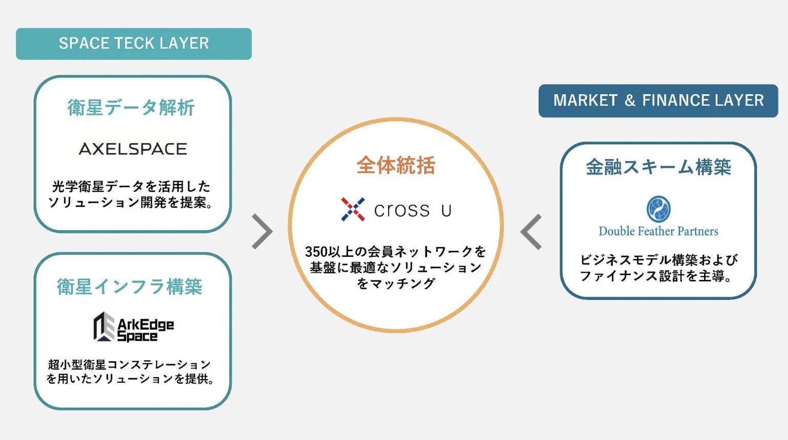 日本の各分野のトップランナーが連携することで、プラットフォーム機能、衛星データ解析、衛星インフラ構築、金融スキーム構築を有機的に統合。コンソーシアムのメンバーも拡大し、広い分野で案件が形成できるよう体制を強化するとしている。