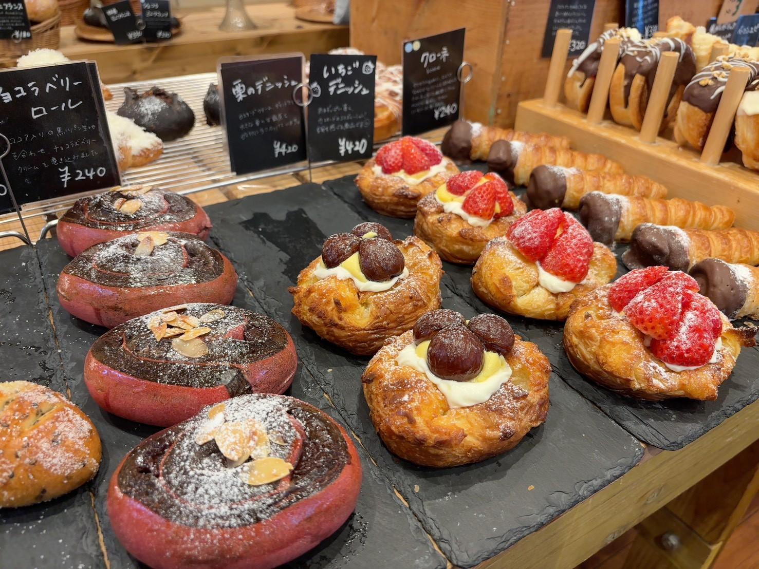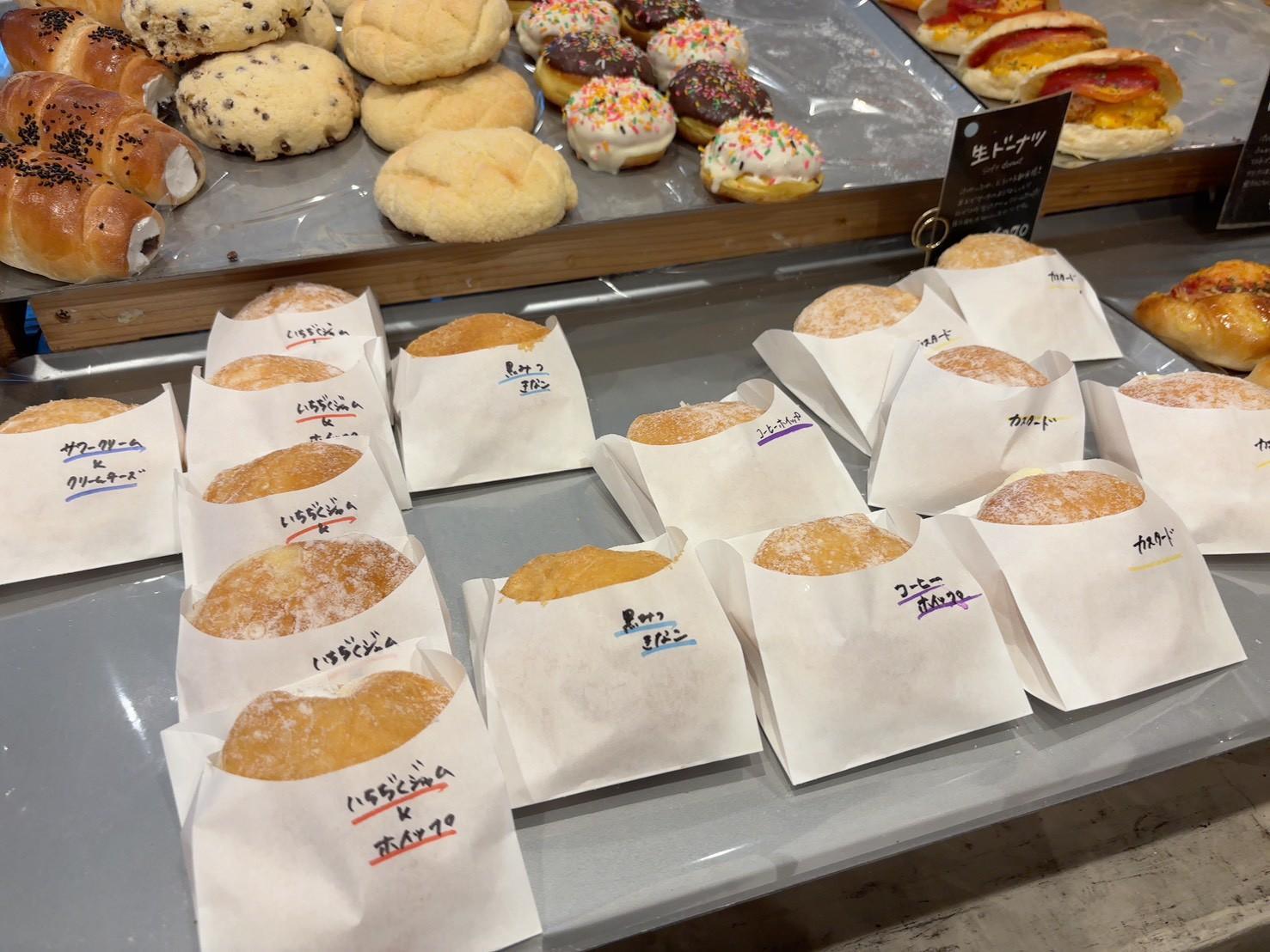 フルーツが乗ったデニッシュは、思わず手に取りたくなるような華やかさがあります。生ドーナツは5種類ほどあり、軽い食感で食べやすく、おやつにも選びやすい印象でした。