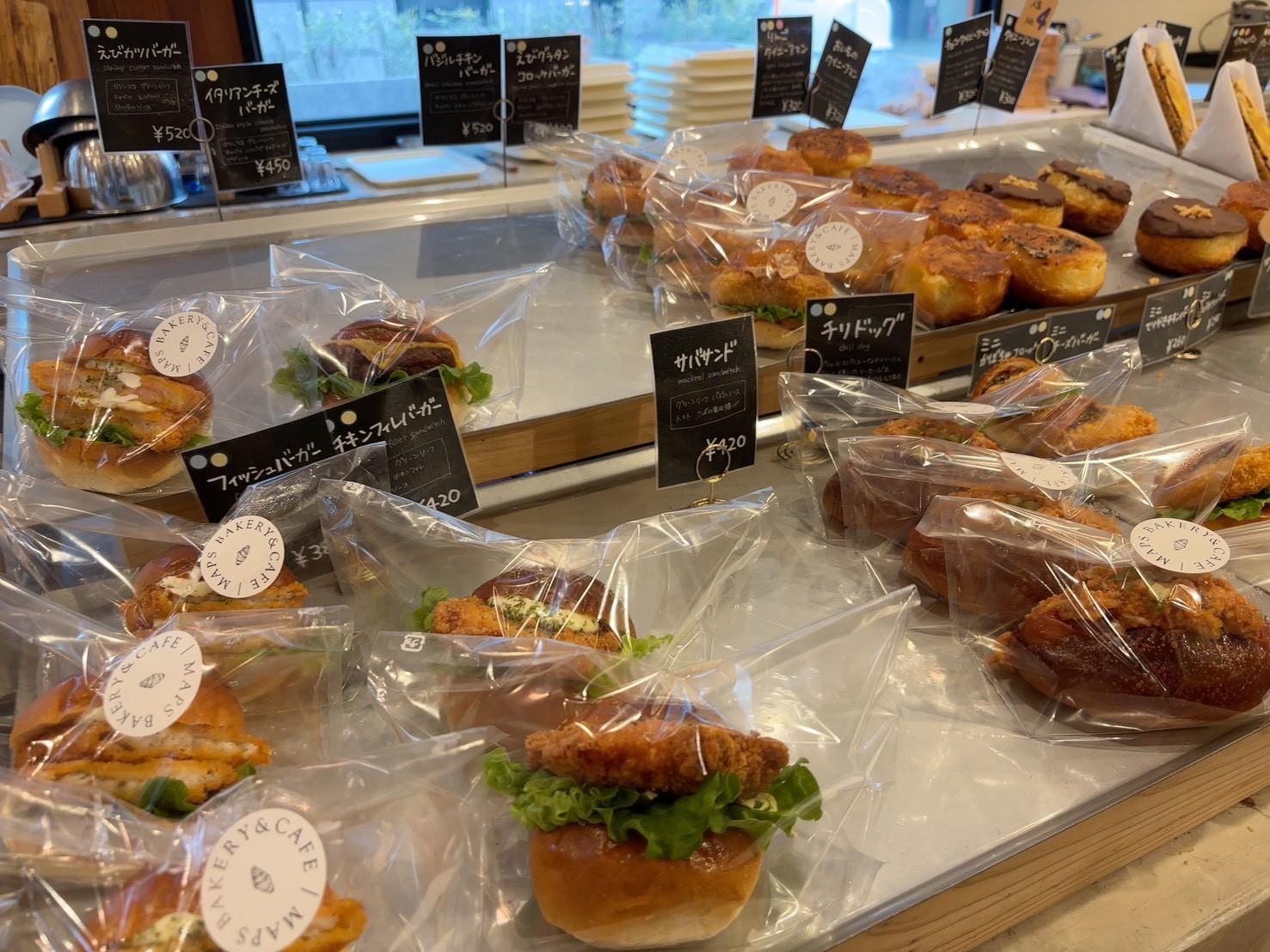 広島市中区大手町にある「MAPS BAKERY / CAFE」は、パンの種類の多さと、落ち着いて過ごせるイートインスペースが印象的なベーカリーカフェです。2階建ての店舗で、1階がパンの販売、2階がイートインスペースになっています。
