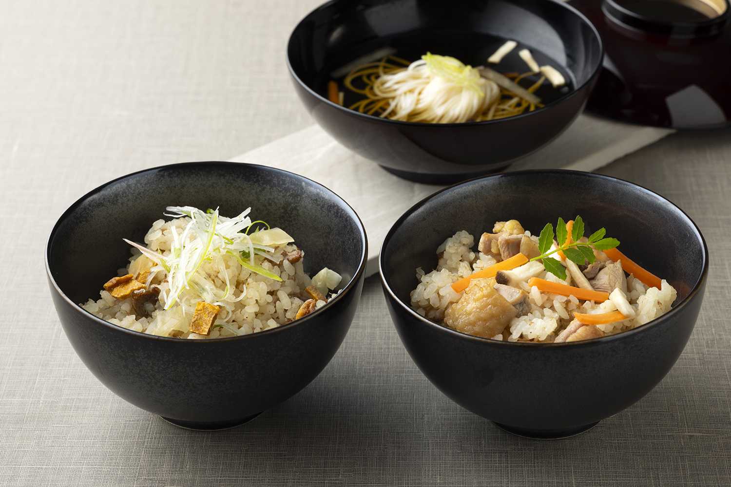 前菜は、酒粕に漬けた大和牛のタリアータを柿酢と大鉄砲豆腐の白和えで味わう一品をご用意。温前菜は郷土料理の飛鳥鍋をモチーフに、大和肉鶏とカチョカバロを牛乳で煮込んだお料理をお楽しみいただきます。魚料理には万葉集・巻十六 三八二九番歌に詠まれた「鯛を食したい」という一節に着想を得て、鯛のしんじょをご用意。奈良県産あまごの甘露煮と吉野本葛のだしでご堪能いただけます。メインディッシュの大和牛 サーロインは、大鉄砲再仕込み醤油で作った自家製にんにく醤油などでお楽しみください。デザートには、葛餅に大鉄砲きな粉のブランマンジェをかけた一皿をご用意し、嘉兵衛本舗の天日干し番茶とともにお召し上がりいただきます。