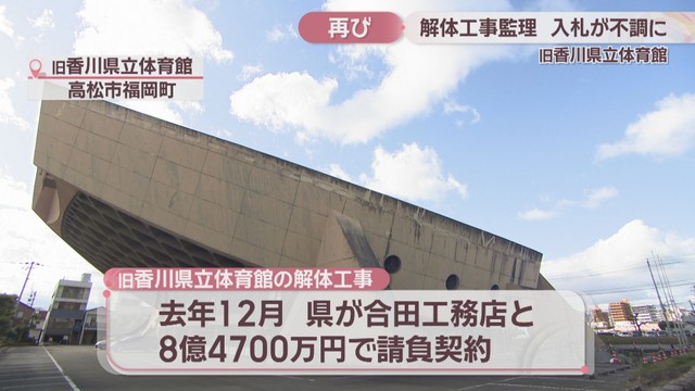 旧香川県立体育館の解体工事を確認、指導する「監理業務」の指名競争入札が再び不調に終わったことが分かりました。