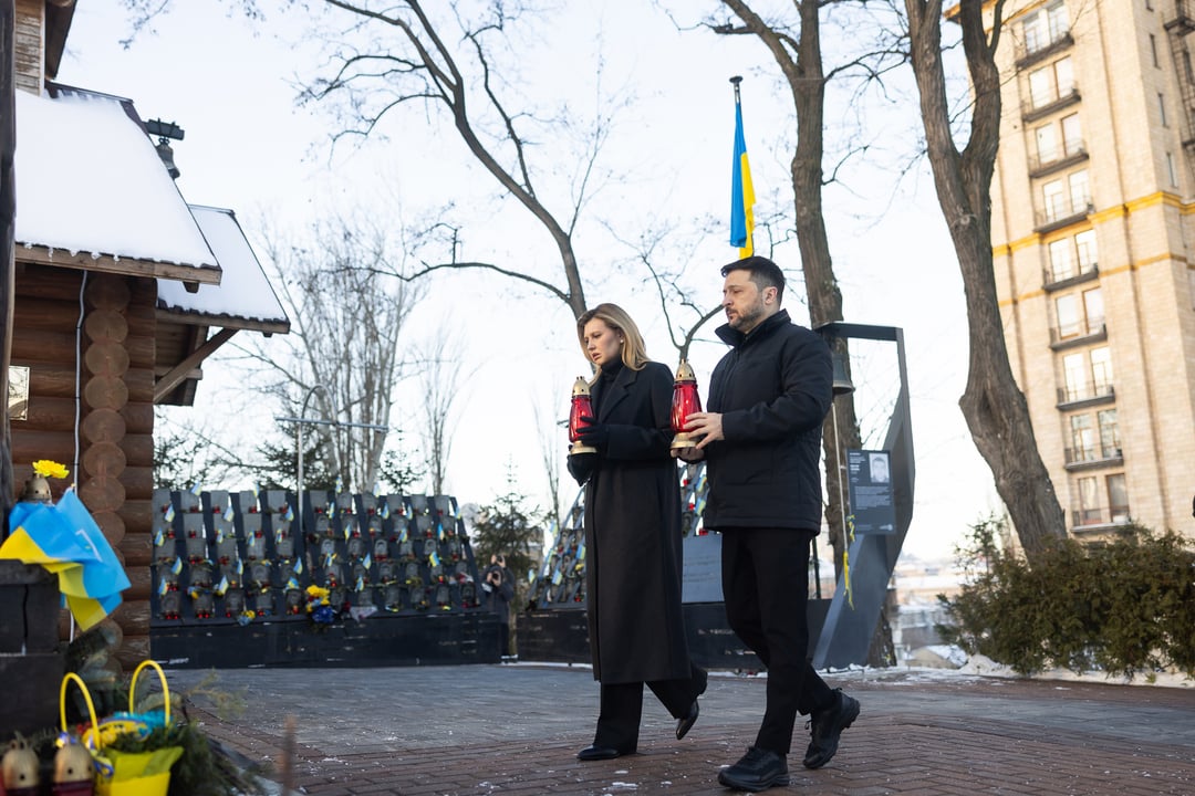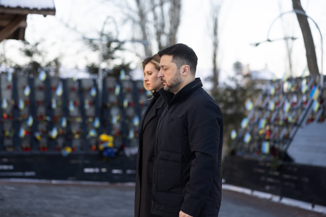 ゼレンスキー大統領は、ウクライナの尊厳革命中に殺害された民間人や活動家を追悼した。 2月20日はウクライナの公式の天百英雄の日であり、彼らの犠牲を追悼する全国的な日である。