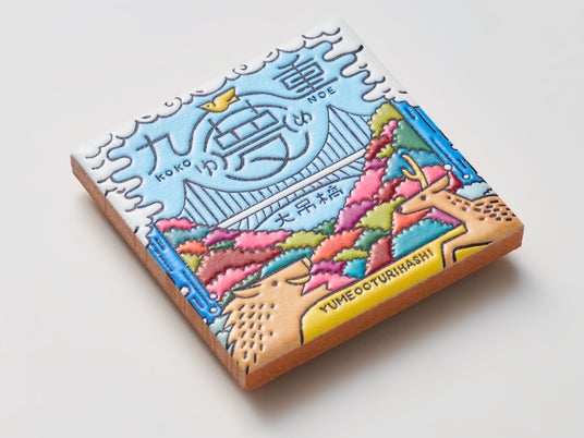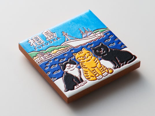 ご当地クリエイターが描いたイラストをもとに、宮城県女川町の「みなとまちセラミカ工房」が15cm角のスペインタイルを制作、そのタイルをスキャンしてPENON独自のプリント技術で立体化するという3段階の工程を経て、スペインタイルの特徴を活かした『旅するマグネット』を仕上げています。