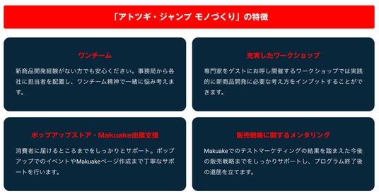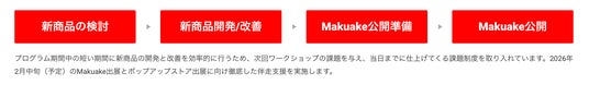 – リターン内容 : 購入者には特別仕様の商品や割引価格での提供を予定。概要: 福岡県内に拠点を置く「アトツギ(家業後継者)」を対象にしたアクセラレーションプログラムです。新商品の「Makuake」出展に向けて、ワークショップと個別伴走による徹底した支援を行います。
