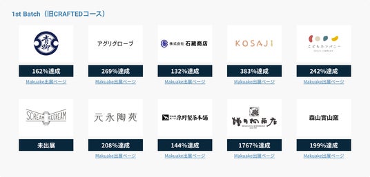 2024 年度からは「ものづくり」「サービス」の 2 コースを設け、より幅広い支援を提供しており、今回「ものづくり」コースで採択された企業 7 社の新規商品を「Makuake」で販売し、事業化を後押しします。