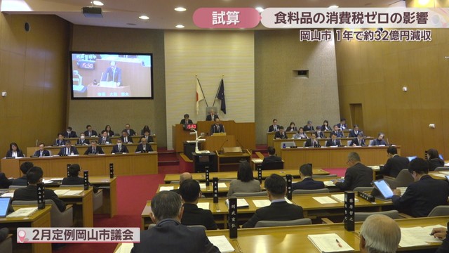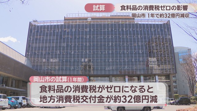 市によりますと、2025年度の数値で試算した場合、食料品の消費税がゼロになることで1年間で岡山市に分配される地方消費税交付金は約32億円減る見込みだということです。