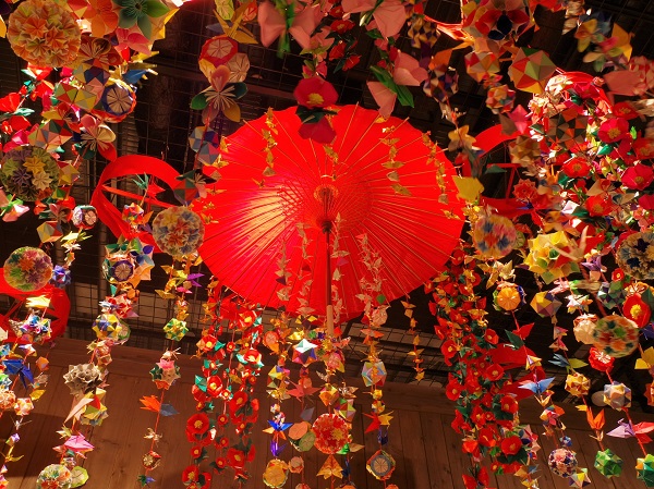 さらに「瀬戸蔵」館内では、千代紙で折られた約3,500個の花飾りや久寿玉などで彩る「千代紙のつるし飾り」も展示される。ミュージアム内の通路約15mにわたり、50本ものつるし飾りが並び、館内を華やかに彩る。