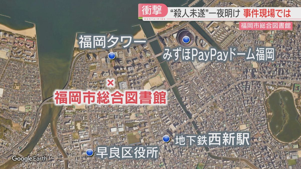 事件現場となった福岡市総合図書館の近くには、福岡タワーやみずほPayPayドーム、さらに小学校や中学校などもあります。