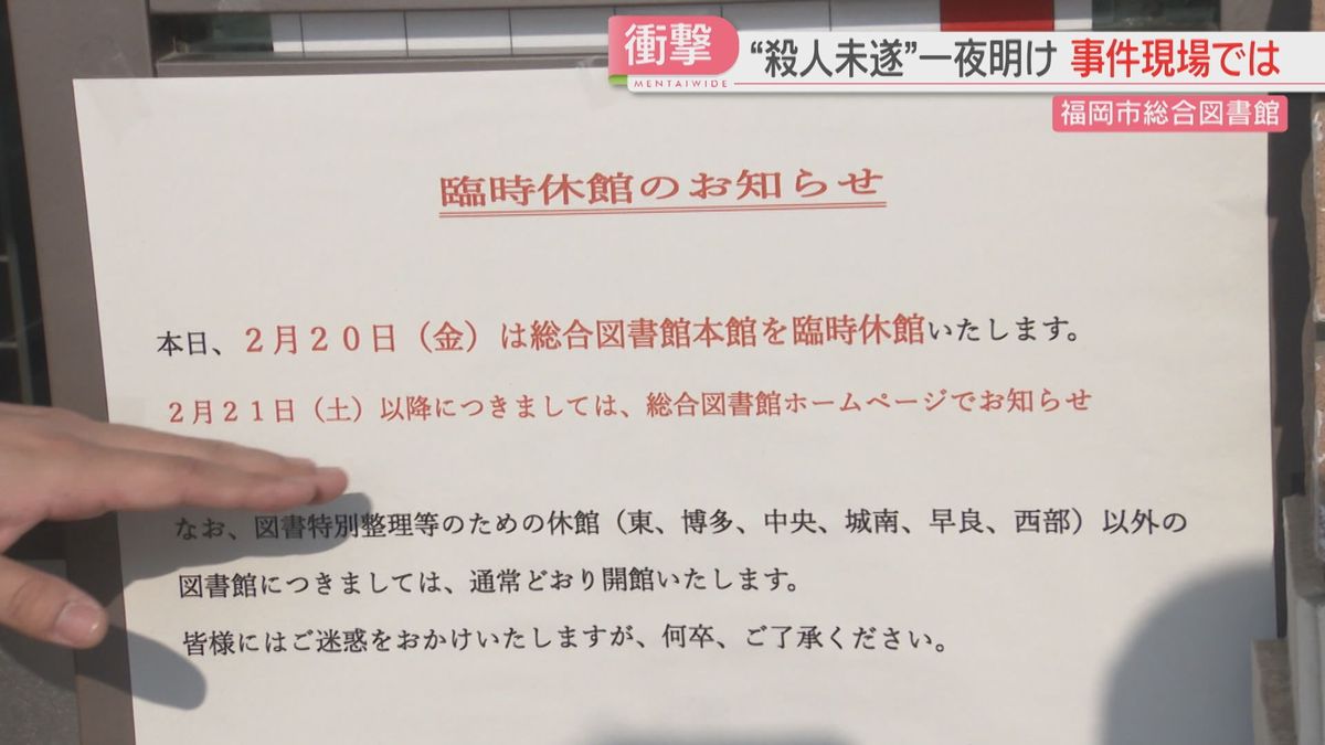 前日の事件を受け20日、福岡市総合図書館は急きょ、臨時休館になりました。