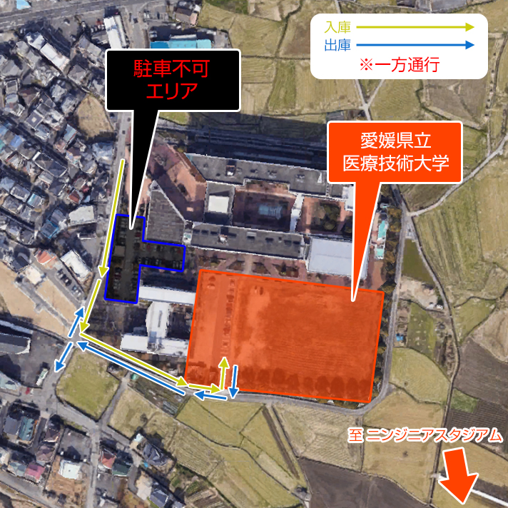 この日は、ひめぎんグラウンドの駐車場は利用できませんので、絶対に駐車しないようにご注意ください。