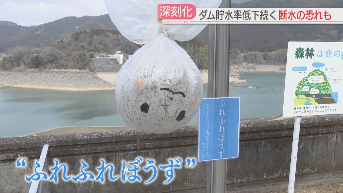 こうしたなか、寺内ダムでは、職員が手作りした恵みの雨を願う「ふれふれぼうず」が飾られています。