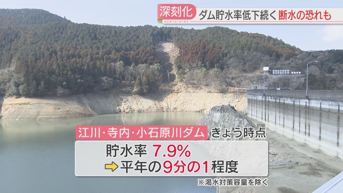 去年の秋以降、筑後川水系では記録的に雨が少ない状況が続いています。福岡都市圏などに水を供給する3つのダムの貯水率は19日、8%を切りました。今の状況が続けば、3月末には一部で「断水」となる恐れも出てきました。