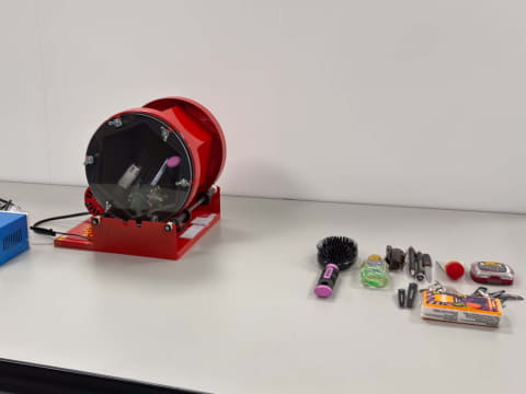 Pixel 10とペンやカギなどを一緒に入れてぐるぐる回転させ、擦り傷耐性をチェック