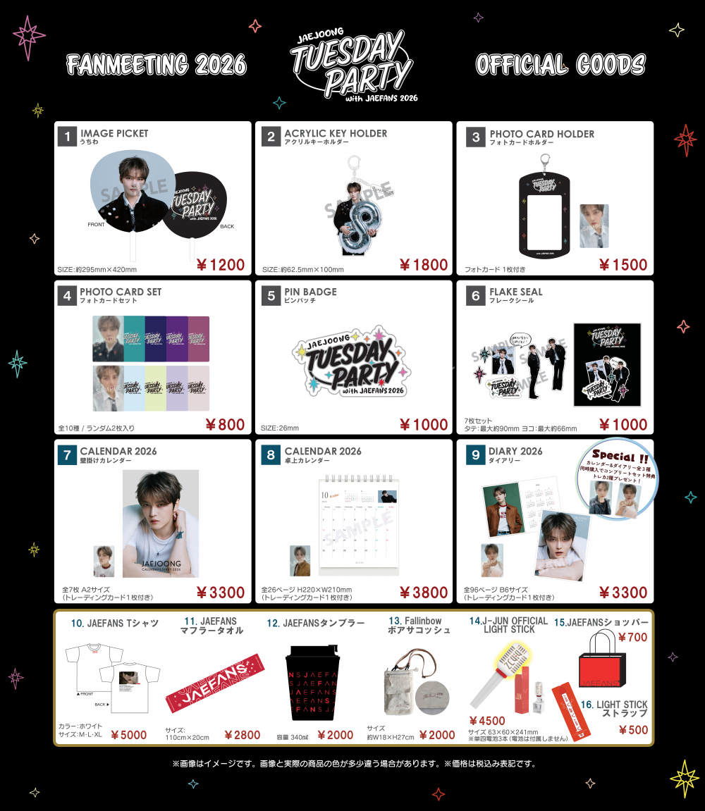 『JAEJOONG TUESDAY PARTY with JAEFANS 2026』グッズの会場販売に関するご案内です。
