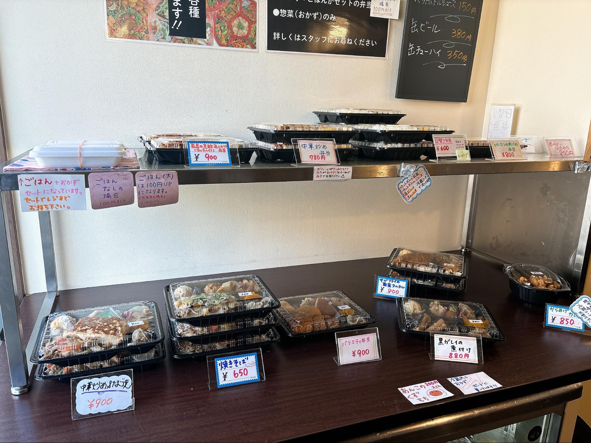 店舗に入ってすぐの棚にお弁当がずらり。