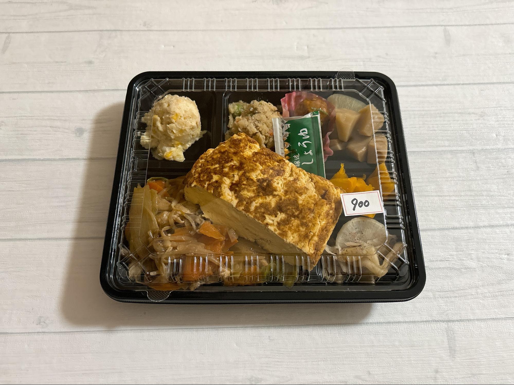 今回は「中華炒め&たまご焼(税込900円)」のお弁当をテイクアウトしました。