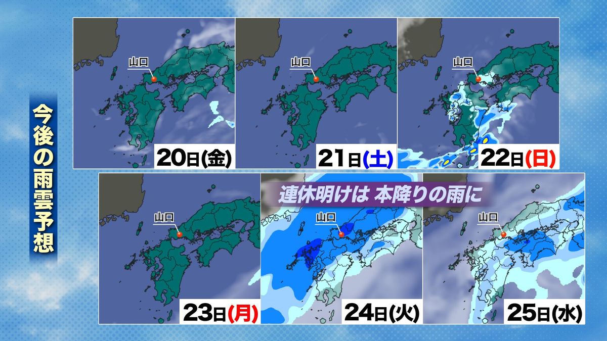 一方で連休明けには西日本に低気圧が接近し、このタイミングでは、かなり久々に本降りの雨になる、とみています。