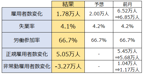 【表1.豪1月雇用統計結果】
