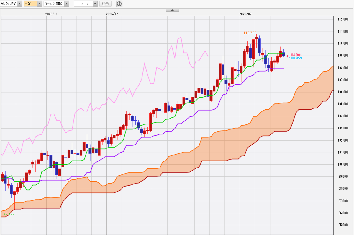 【豪ドル/円 日足・一目均衡表】